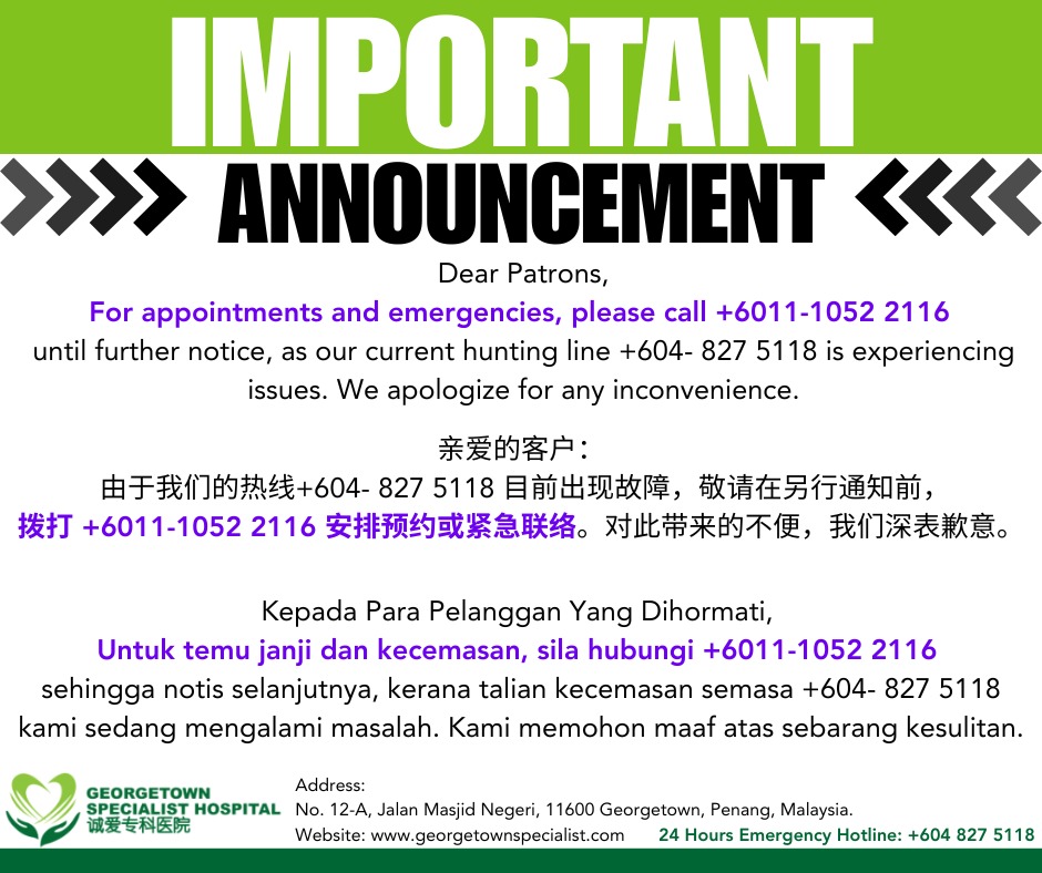 Copyright © Georgetown Specialist Hospital Sdn Bhd K.K.L.I.U: 0179/2027